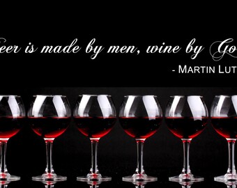 Luther Beer Quote RedLetterArtDesign 338 3500 More colors Wine made by God Custom Wine Martin Luther quote - Pick your Font Beer Wine Vino Kitchen Cellar living room wall. Quote by Martin Luther. The curvature of the glass.